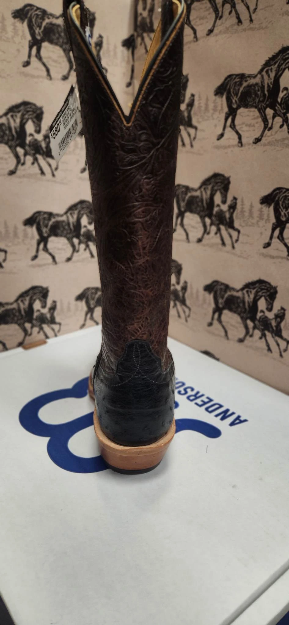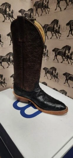 Black Full Quill Ostrich and Golden Tooled Western Boot.